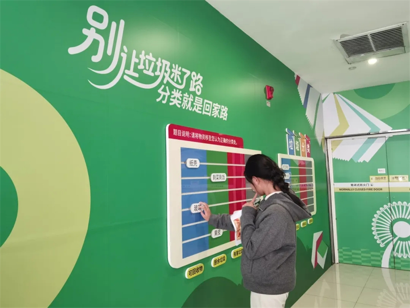 三楼的“书籍翻翻乐”考验记忆与积累,孩子们专注背诵装置上国内外名著的经典语句,在文学熏陶中提升文化素养;四楼的“文明奇趣园”则成了欢乐的海洋,环保跳跳棋、推拉答题、垃圾分类答题三项游戏,让孩子们在玩乐中掌握了文明环保的知识。最后,大家穿梭于商场内,寻找“文明商户”标识牌并合影,为闯关之旅画上了圆满句号。