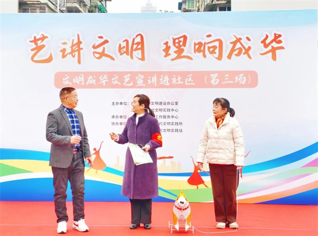 除了接地气的集市服务,成华区还通过生动的文艺宣讲形式,让文明理念在欢声笑语中浸润人心。12月12日,成华区精神文明办公室、成华区新时代文明实践中心主办的“艺讲文明 理响成华”宣讲活动走进猛追湾街道培华路社区。活动围绕“文明暖冬行”主题,采用“文艺+宣讲”的形式,将文明倡导知识融入一个个精彩的节目中。