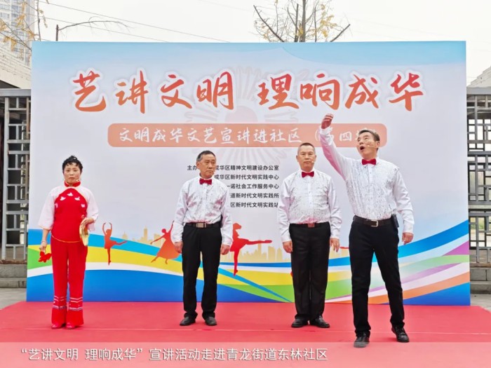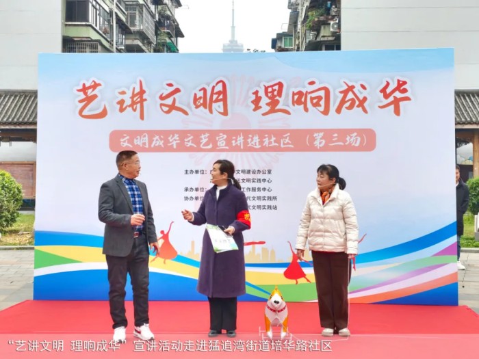 四川文明网成都讯(成华区文明办)由成华区精神文明建设办公室、成华区新时代文明实践中心主办的“艺讲文明 理响成华”宣讲活动进社区自今年12月初启动以来,以“文艺+宣讲”的创新模式深入基层社区,有效推动了文明理念的传播与生根。截至目前,该系列活动已成功举办10场,覆盖多个社区,累计惠及群众1000余人,为基层精神文明建设注入了鲜活而持久的力量。
