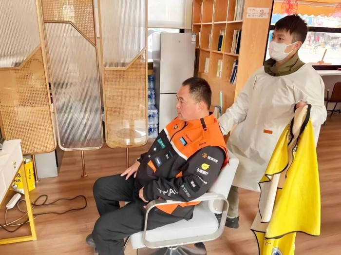 “普通人理发需要8元,我们快递员、骑手在驿站理发,只要5块钱,又快又好。”