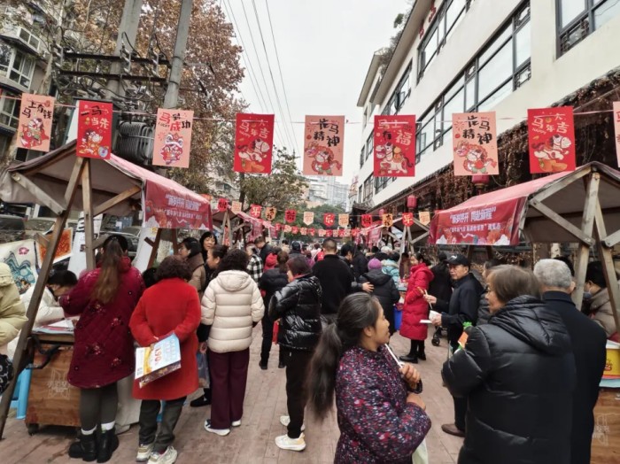 府青路街道怡福社区在毛边书局·桃蹊书院新时代文明实践基地开展了“新年新气象 福满怡邻里”潮集市。现场设有共享食光、福气工坊、趣味游戏等特色区域,居民共品汤圆、写福字、做手工、玩游戏,其乐融融。活动还联动多家爱心单位开展金融反诈、口腔义诊等宣传服务,并邀请残疾人朋友共同参与,在冬日里传递出浓浓的节日暖意。
