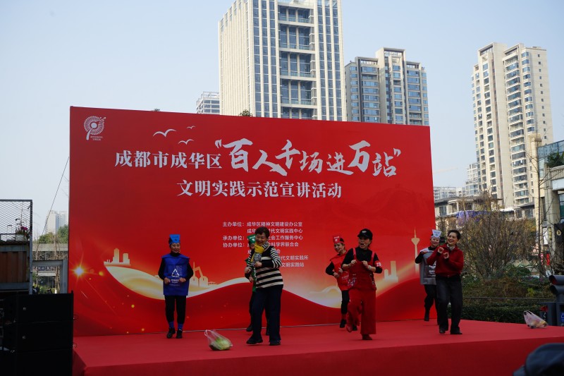 当天,成都市成华区“百人千场进万站”文明实践示范宣讲活动走进二仙桥公园,将9个“文艺+理论”宣讲节目、10项便民暖心服务活动“打包”送到群众身边。