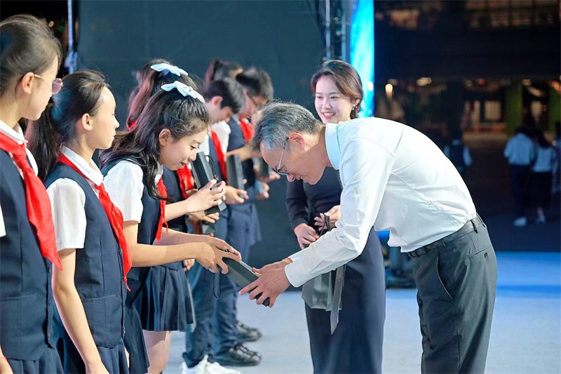 少代会学生为芶鹏戴红领巾。受访者供图