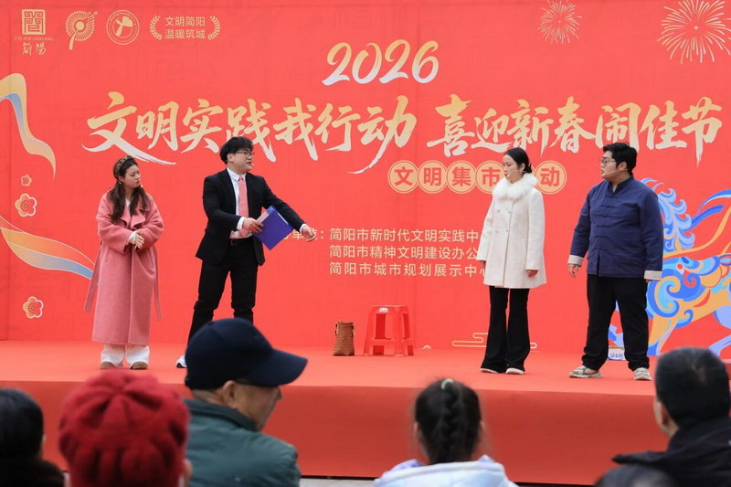 四川文明网成都讯(简阳市文明办)2月7日,“文明实践我行动·喜迎新春闹佳节”文明集市活动在简阳市规划馆小广场举行。本次活动由简阳市新时代文明实践中心、简阳市精神文明建设办公室、简阳市城市规划展示中心联合主办,通过“主题汇演+沉浸游园”双线融合的形式,推动文明理念融入年俗、走进群众。