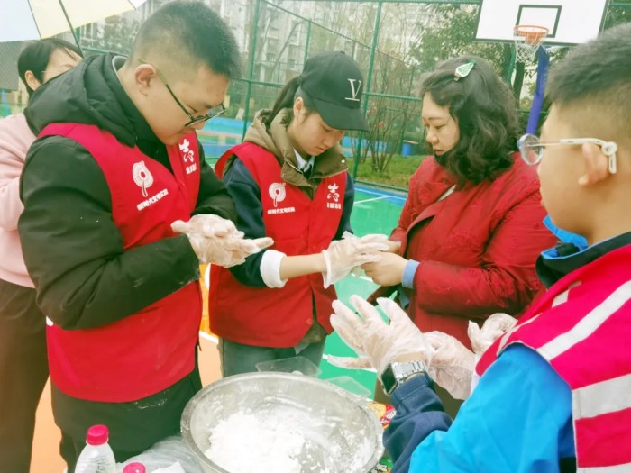 热闹之余,“暖心汤圆宴”公益派送环节更是充满温情。志愿者与亲子家庭围坐在一起,揉面团、包馅料,一个个圆润饱满的元宵很快摆满托盘。热气升腾,甜香四溢,暖意融融。