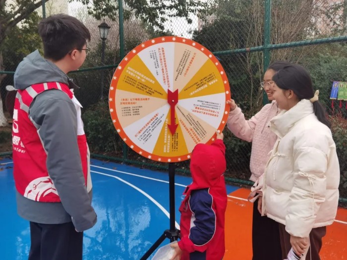 一旁的“文明知识大转盘”前更是排起小队,居民争先恐后转动转盘、回答文明小问题,在趣味游戏中收获知识与成就感。“巧手花灯DIY”区则成为亲子家庭的乐园,家长和孩子一起制作马年小灯笼、福字灯笼。裁剪、粘贴、组装……一盏盏造型各异的花灯在手中亮起,孩子们提着灯笼笑意满盈,为节日增添了无限童趣。