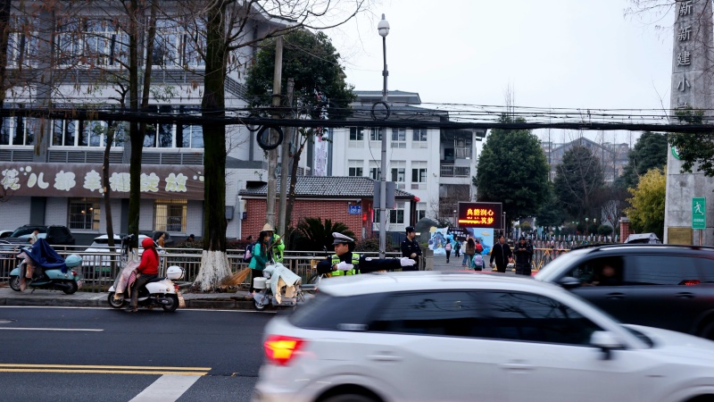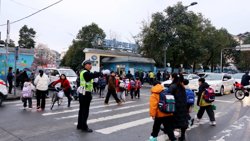 开学首日清晨,校园周边车流、人流显著增加。都江堰公安交警提前到岗到位,在新建小学、泡桐树小学都江堰校区等重点学校周边路段坚守执勤,有序疏导车流人流,规范接送车辆停放,引导车辆即停即走,及时劝阻占道停车、乱鸣喇叭等交通违法行为,全力维护校园周边通行秩序。