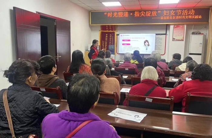 双水碾街道花径路社区新时代文明实践站邀请辖区妇女群体参与“时光慢递·指尖绽放”妇女节主题活动,共度温馨节日,传递社区关怀。活动伊始,健康讲师围绕日常保健、情绪调节及常见病防护等内容,开展女性健康知识讲座,用通俗易懂的语言引导大家树立“预防为主、科学养生”的健康理念。