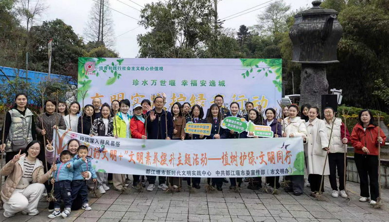 下一步,都江堰市将以此次活动为契机,持续深化生态文明建设与精神文明建设融合发展,将珍水护堰与植绿护绿深度结合,策划开展更多形式多样的文明实践活动,推动植绿护绿、节水护水成为全民自觉行动。让绿色成为都江堰高质量发展的鲜明底色,让每一片绿都成为守护珍水的坚实屏障,以生态之绿涵养堰上之水,让文明新风浸润千家万户,为建设“珍水万世堰 幸福安逸城”的现代化三遗之城都江堰凝聚更多文明与生态力量。