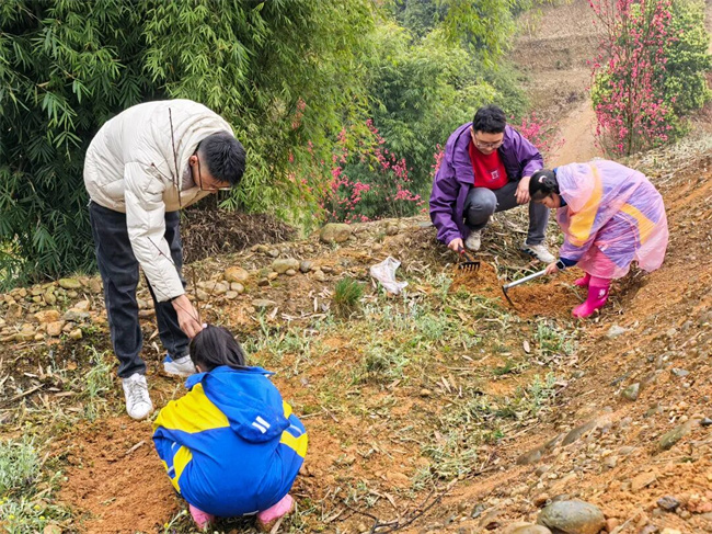 四川文明网讯(邛崃市文明办)在植树节之际,邛崃丘山阅迎来了一堂特别的“课”。没有讲台,没有课桌,50组亲子家庭以铁锹为笔、汗水作墨,在田间地头写下了一场生动的生态文明实践课。这场由邛崃市新时代文明实践中心、邛崃市规划和自然资源局、邛崃市南街小学、邛崃市志愿服务联合会联合主办的“老区新讲坛”活动,让孩子们在泥土芬芳中感受绿色力量,让“绿水青山就是金山银山”的理念在心底悄然扎根。
