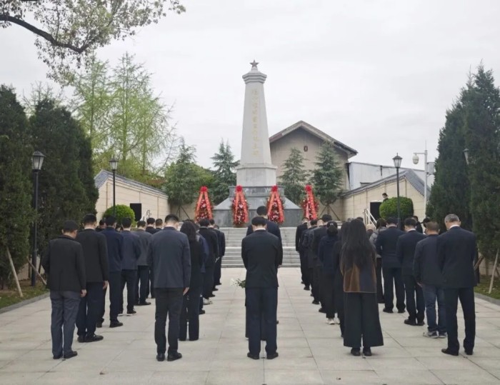 随后,大家怀着崇敬之情,为朱向离等19名烈士擦拭墓碑,以朴素真挚的行动寄托哀思。最后,全体党员面向党旗重温入党誓词,在深刻的思想洗礼中感悟初心使命,坚定理想信念。