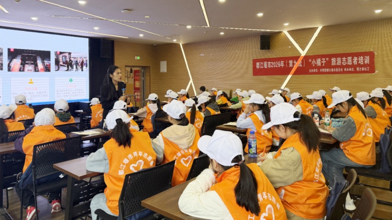 四川文明网成都讯(都江堰市文明办)春日的都江堰,草木萌发,生机盎然,都江堰景区迎来了一批充满活力的“小橘子”——他们是2026年(第九批)新晋的“小橘子”旅游志愿者。经过严格的岗前培训与选拔,这46名同学正式持证上岗,用童声和笑容为千年古堰增添了一抹亮色。