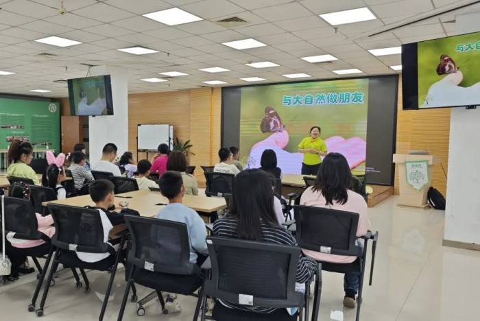 本次活动特邀星星树环境教育推广讲师团队的志愿者老师,以“与大自然做朋友”为主题,围绕“自然在哪里”“城市里的动植物朋友”“为什么要和它们做朋友、怎样做朋友”三大板块,开展主题宣讲。志愿者老师通过生动形象的语言和丰富的案例,向亲子家庭介绍了城市中常见的动植物及其独特的生存智慧,引导大家重新发现身边被忽略的自然伙伴。