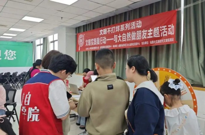 四川文明网成都讯(成华区文明办)4月的文明实践集中活动日如期而至。4月11日下午,由成华区精神文明建设办公室、成华区新时代文明实践中心主办,仙韵社区新时代文明实践站协办的“文明不打烊系列活动之‘文明实践我行动·与大自然做朋友’”主题活动在成华区新时代文明实践中心多功能厅举行,30组亲子家庭参与其中,共赴一场别开生面的自然之约。