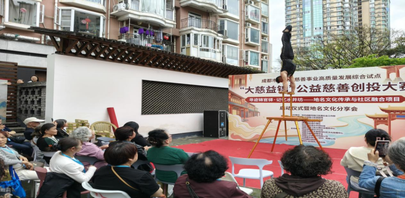 本次活动由中共成都市锦江区委社会工作部、成都市锦江区民政局、成都市锦江区慈善会主办,锦官驿街道党工委、锦官驿街道办事处、锦官驿街道水井坊社区、成都市锦江区众善社会工作服务中心承办,锦官驿街道交子社区、成都市锦江区爱有戏社区文化发展中心鼎力支持。水井坊社区 “两委”领导、项目执行团队、社区居民、志愿者及辖区商户代表欢聚一堂,共同开启水井坊地名文化保护与社区共建的新篇章。