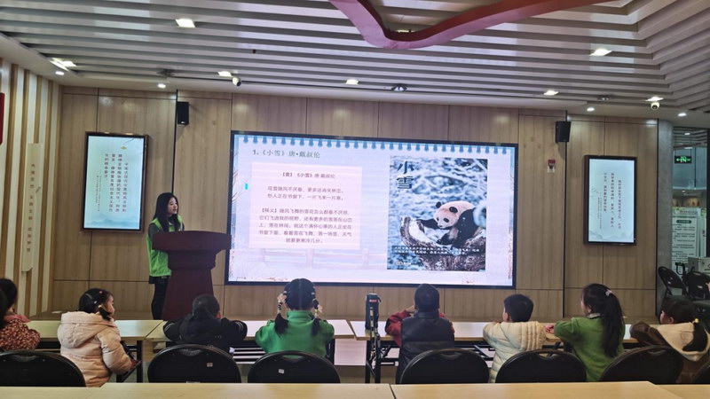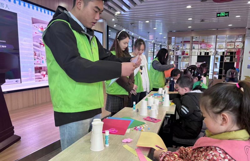 活动中,志愿者通过图文结合方式系统讲解小雪节气的气候特征与传统习俗,帮助少年儿童深入了解冬季自然规律与文化内涵。手工制作环节,志愿者组织儿童使用环保材料(纸杯、绒球等)制作雪人模型,通过填充细沙、绘制五官及装饰围巾等标准化操作步骤,有效提升少年儿童的动手实践能力,促进传统文化认知内化。