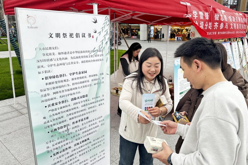 为培育文明祭扫新风尚,营造安全、环保、和谐的节日氛围,3月22日,绵竹市新时代文明实践中心办公室在绵竹市中心广场开展清明文明祭祀倡议书宣传活动。活动现场,志愿者通过发放倡议书、现场讲解等多种形式,向过往市民普及“文明祭扫、绿色清明”理念,积极倡导市民摒弃焚烧纸钱、燃放鞭炮等陈规陋习,采用敬献鲜花、植树绿化、踏青遥祭等低碳环保方式寄托哀思,引导广大市民在传承传统祭祀习俗的同时,主动践行新时代文明理念,共同守护干净、安全的节日环境,让文明新风浸润清明。
