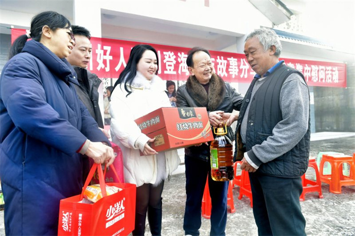 随后,刘登海与爱心人士一道,将满载祝福的大米、食用油、牛奶等生活物资以及寓意吉祥的新春挂历,逐一送到脱贫户手中。捧着沉甸甸的慰问品,村民汤务成笑容灿烂:“能听刘好人讲奋斗经历,还领到这些年货,心里别提多暖和了!”欢声笑语中,浓浓的年味与邻里温情在村庄里缓缓流淌。