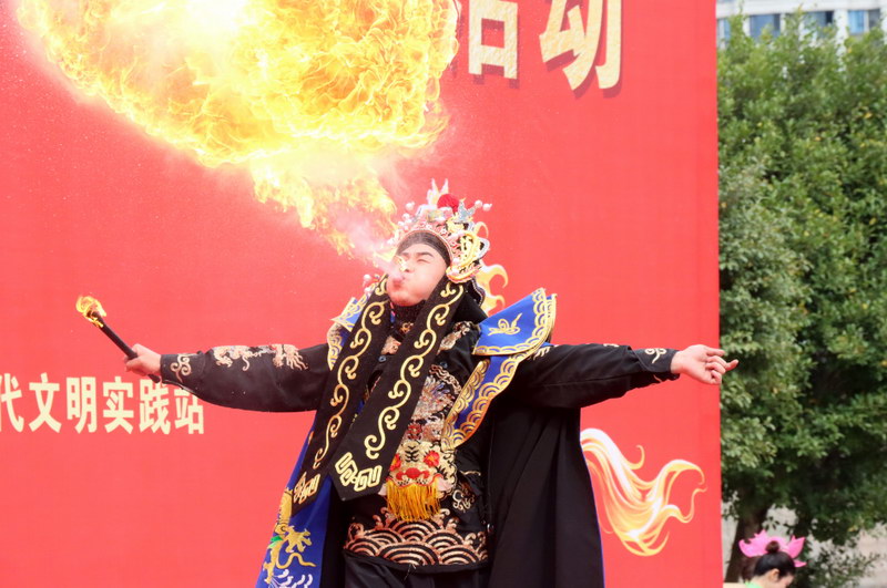 文艺慰问演出于下午2:00在气势恢宏的舞蹈《飞天鼓韵》中拉开序幕,在舞蹈《盛世花开》中圆满落幕。整场演出内容丰富、形式多样,涵盖歌舞表演、魔术、川剧变脸等,既有《千灯愿》《折柳》等展现传统文化韵味的舞蹈,也有《巴郎仔》《恭喜发财》等传递节日喜悦的歌舞,川剧变脸等非遗表演更是引得现场掌声、欢呼声此起彼伏。同时,为了增强互动性和群众的参与性,在文艺演出中还设置了知识问答,涉及传统文化、创文知识、社会主义核心价值观等。
