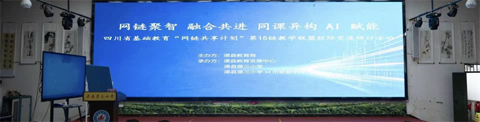 4月10日,四川省“网链共享计划”第15链渠县第三小学联盟2026年春季校际交流研讨活动在渠县第三小学顺利举行。本次活动以“网链聚智 融合共进 同课异构 AI赋能”为主题,由渠县教育局主办,渠县教育发展中心、渠县第三小学承办。渠县第三小学党委副书记、校长郭娟主持活动,来自网链内34所兄弟学校、万源市河口镇小学、渠县第三小学的领导和教师代表近300人齐聚一堂,共探融合教学新路径,共绘AI赋能教育新蓝图。