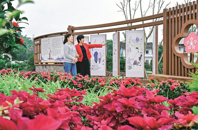 梅花成为院子的文化主题。新建的休闲广场中央,梅花造型展板记录村庄变迁,“梅院人家”展示栏弘扬孝道、勤劳、节俭等美德,让村民学有榜样。环境美化与道德教化相得益彰,潜移默化滋养乡风文明。