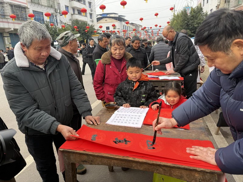 最受欢迎的当数写春联送福字展台,书法家们挥毫泼墨,笔走龙蛇,“富贵平安财生财,全家和睦福中福”“金马奔驰开胜境,春风浩荡展宏图”等一副副寓意吉祥的春联新鲜出炉,带着墨香递到村民手中,现场暖意融融。