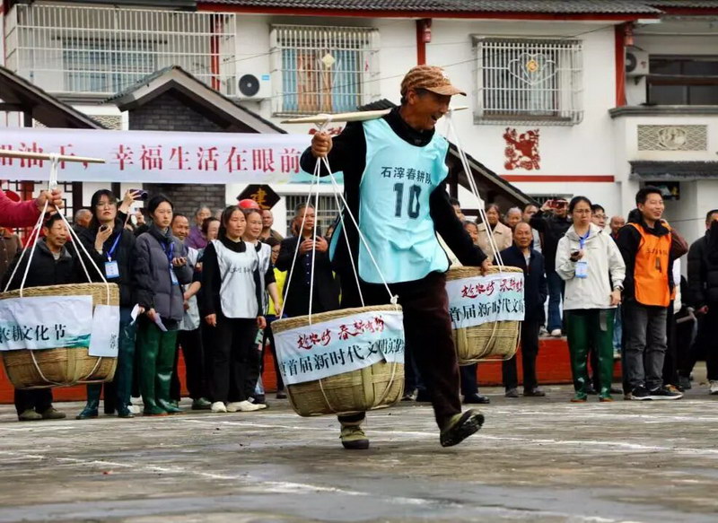 上午8时许,活动现场已热闹起来,各代表队身着色彩鲜明的队服,精神抖擞地在广场集结。“听说今天有农耕竞赛,还有非遗展示,我特意早点过来,既能看比赛,又能买些土特产!”石滓镇大河坝村村民李大姐笑着说。