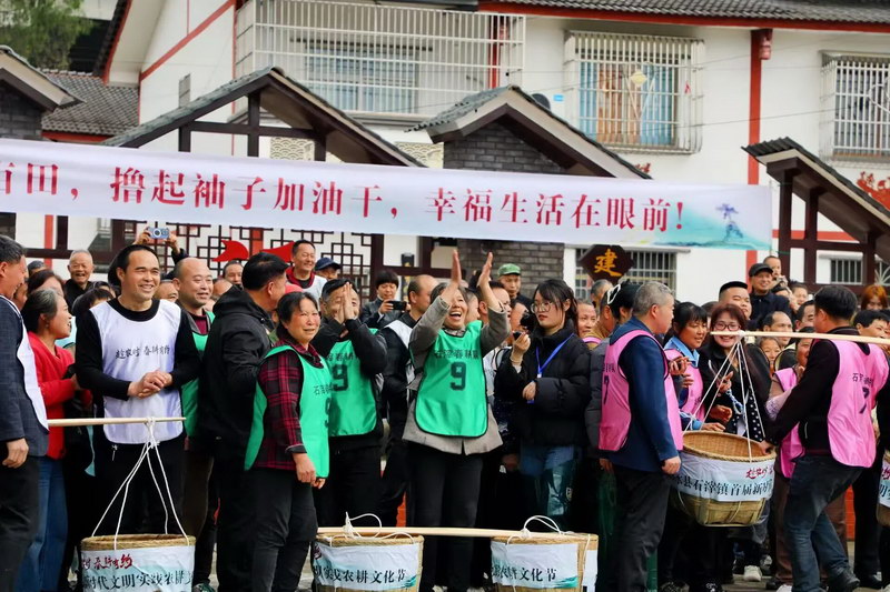 四川文明网广安讯(肖智方 黄川东)3月30日上午,广安市邻水县石滓镇大河坝村人声鼎沸,巴蜀同脉文明同行“趁农时·春耕有约”邻水县石滓镇首届新时代文明实践农耕文化节火热开幕。来自重庆市垫江县太平镇、澄溪街道等6个乡镇(街道)与石滓镇本地的12支代表队、120余名队员齐聚田间地头,以赛为媒、以农会友,在欢声笑语中开启了一场“土味”十足的农耕大联欢。