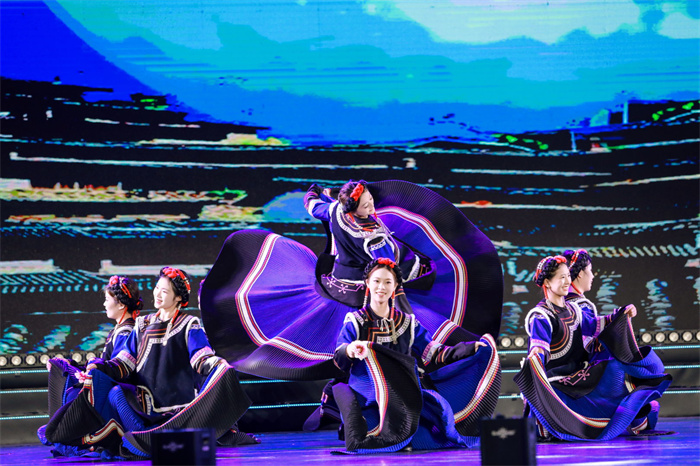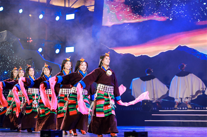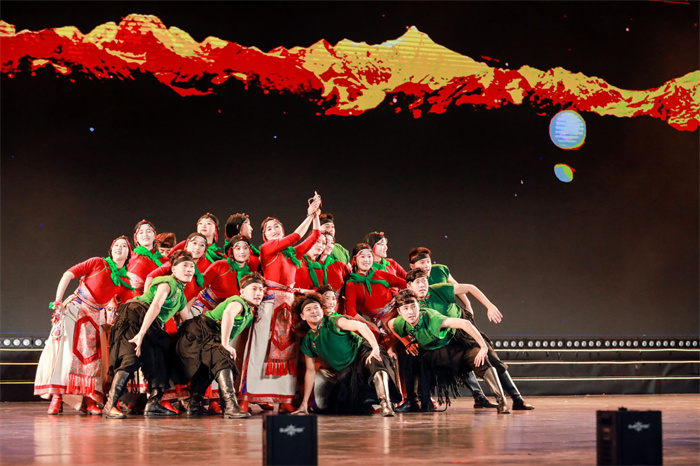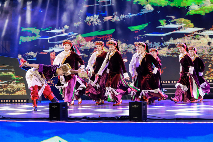 晚会文艺表演分为《薪火传世》《时代炫彩》《天下同心》三个篇章,序章《母亲是中华》以深情旋律唤起家国情怀,尾声《新时代新甘孜》以豪迈姿态展望未来。从古老藏戏元素的灵动演绎到现代街舞与高原风情的创意融合,从乡村振兴的生动再现到民族团结的温暖叙事,舞台上的每一段舞蹈、每一首歌曲,都彰显着甘孜儿女对家乡的热爱、对祖国的赤诚,展现着“中华民族一家亲”的深厚情谊。