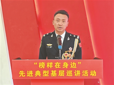甘孜县公安局下雄派出所所长、洛戈梁子警务站负责人刘鹏(“四川好人”)在理塘县开展“榜样在身边”巡讲。