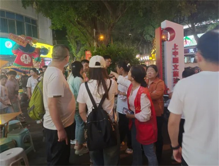 同时,积极引导辖区“两新”党组织主动融入服务大局,嘉瑞财富商圈联合党支部组织商圈企业、商户开展“诚信经营”培训,提升服务规范与行业形象;张公桥好吃街区联合党支部多维度保障节日消费体验,牵头开展“每日巡查+商户自检”,守护游客“舌尖上的安全”。