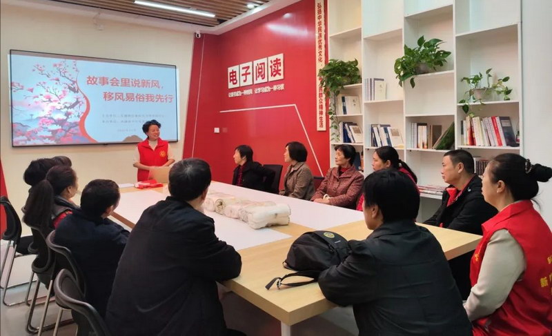活动伊始,志愿者详细介绍了本次分享会的初衷与流程。志愿者表示,移风易俗不是抽象的口号,而是融入日常的生活实践,本次活动精选了涵盖 “厚养薄葬”“文明婚嫁”“节俭办事”“抵制陈规陋习”“邻里互助” 等主题的案例与文章,希望通过读书分享的形式,让居民在交流中深化对文明新风的理解,在互动中凝聚践行共识。