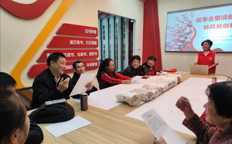随后,志愿者带领大家共同学习了书中的典型案例,通过剖析高价彩礼、大操大办等陋习的危害,解读集体婚礼、公益祝寿、抵制邪教、邻里共建等新风尚的价值,为后续分享奠定了良好基础。