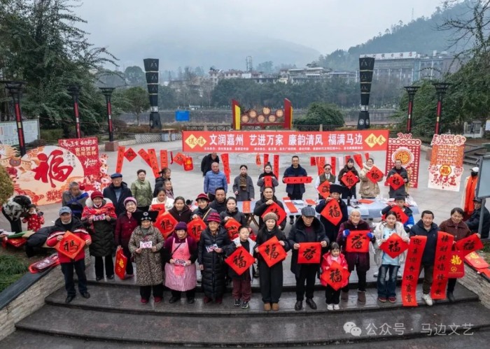 墨香传情暖民心,春联送福迎新春。2026年新春佳节来临之际,为传承中华优秀传统文化,落实文化惠民便民要求,同时深化廉洁文化建设,连日来,马边彝族自治县文联联合多个部门开展2026年写春联送福字文化文艺惠民活动,通过组织马边本土书法骨干为群众送上兼具年味与廉韵的手写春联与新春祝福,营造起欢乐祥和、民族团结、崇廉向善的浓厚节日氛围。