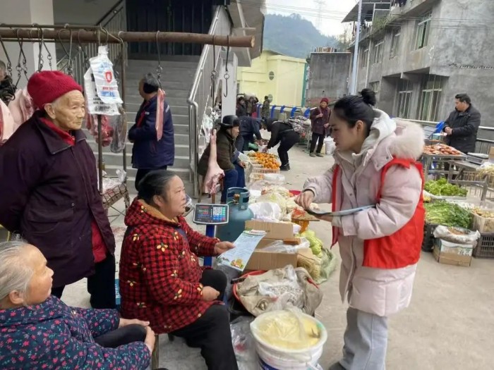 农贸市场人流密集、群众聚集,是新时代文明实践宣传服务的重要阵地。活动现场,新时代文明实践志愿者们以群众喜闻乐见、通俗易懂的方式,搭建宣传服务台,通过发放宣传手册、现场答疑解惑、典型案例讲解、悬挂宣传横幅等多种形式,面向过往商户、群众开展全方位、接地气的安全科普宣传,让文明实践服务直达群众“家门口”。