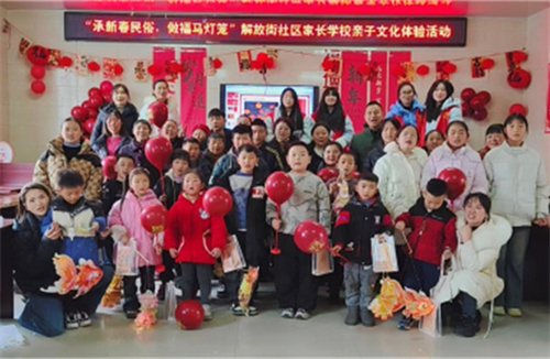 活动尾声,全体家庭手持成品合影,志愿者送上马年小礼品,齐声喊出口号“丙午马年,灯笼映福,亲子同心,喜乐常伴”,定格温馨瞬间。