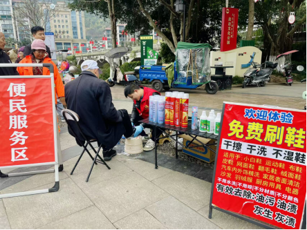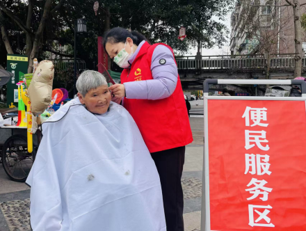 免费理发、擦鞋等服务摊位前,也是一片繁忙的景象。志愿者们手持工具,认真地为群众修剪头发、擦拭皮鞋,他们细致周到的服务赢得了群众的一致好评。一位老大爷理完发后,对着镜子满意地说:“这手艺真好,一下子年轻好几岁!”这些看似微不足道的服务,却像冬日里的暖阳,温暖着群众的心,用实际行动践行了文明理念。