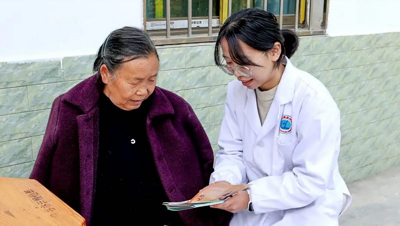 近日,禾加镇卫生院的支医人员蔡思瑶下乡义诊,她一边为老人量血压、测血糖,一边记录数据,询问既往病史与用药情况,还为老人们讲解高血压、糖尿病日常护理要点等健康知识。