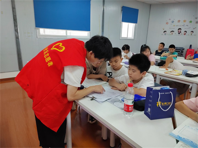 中坝街道太白社区新时代文明实践站链接成都外国语学院大学生志愿服务队资源,开展“书香太白·护梦成长”爱心托管班,志愿者们为孩子们进行课业复习和预习,辅导假期作业等,并开展珠心算、手工制作等活动。