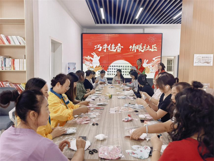 活动伊始,邀请专业手工艺人现场教学,从穿针引线、裁剪布料,到填充香料、缝制造型,耐心细致地向居民讲解桂花玉兔香囊的制作步骤。居民们围坐在一起,认真学习、相互交流,现场氛围温馨融洽。一双双巧手上下翻飞,不一会儿,一个个造型可爱、香气四溢的桂花玉兔香囊便呈现在大家眼前。