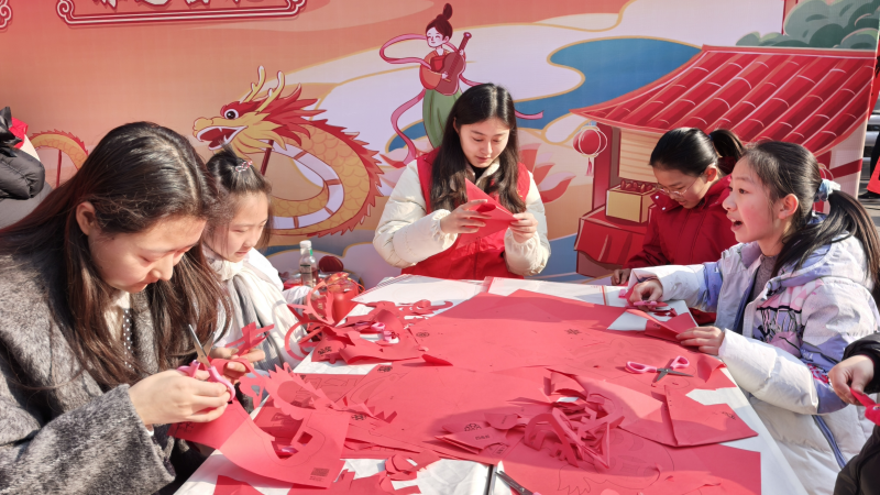 活动现场人头攒动,气氛热烈。核心区域设置了多项非遗文化体验项目,吸引了众多市民尤其是青少年驻足参与。在福字拓印、剪窗花、花灯制作等非遗体验区前,志愿者细致指导制作技巧,耐心讲解其中文化内涵,孩子们在引导下亲手剪出吉祥窗花,制作出憨态可掬的醒狮花灯,既体验了动手的乐趣,也直观感受到了非遗文化的独特魅力与蓬勃生机。