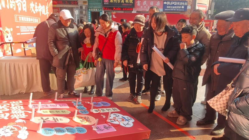 一旁的趣味游戏互动区欢声笑语不断。猜灯谜、好运套圈、财运上上签、成语猜猜乐等趣味游戏,勾起了许多成年人的童年回忆,也让孩子们玩得不亦乐乎。这些简单而充满趣味的活动,不仅娱乐身心,更在潜移默化中传播了传统节日习俗的知识,增强了活动的互动性与感染力。