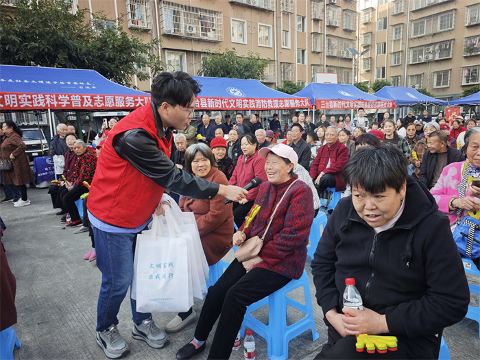 活动现场还为参与群众发放宣传资料和文明小礼品,以奖促学、以学促行,有效提升了理论宣讲与文明宣传的吸引力、参与度和实效性,让群众在轻松愉快的氛围中学习理论知识、掌握文明规范。