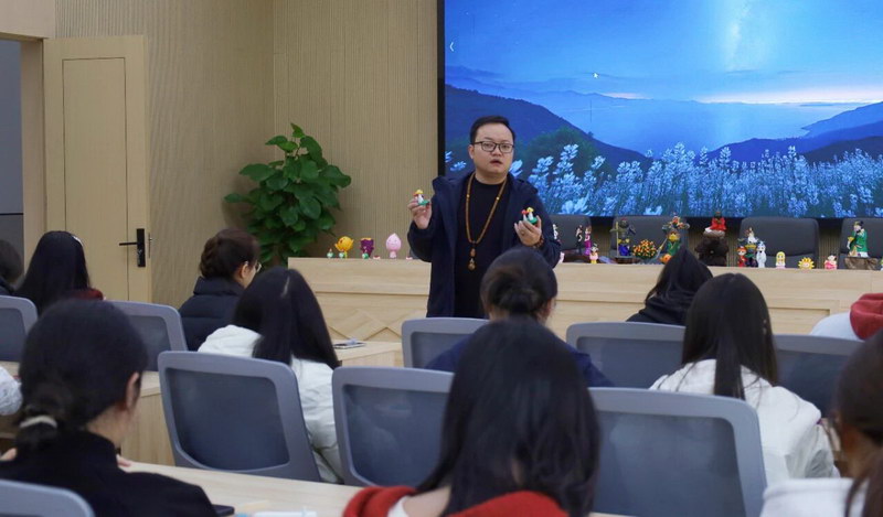 活动中,市级非遗泥塑项目传承人王安斌现场讲授泥塑雕刻技艺,从选土到塑形,从雕刻到修饰,细致讲解、亲手示范,让学员在一抔泥土中感受匠心情怀;县级非遗七彩勾花项目传承人刘锦华则带领大家学习勾花编织技巧,一根根丝线在指尖穿梭,逐渐绽放出色彩斑斓的创意之花。学员们从陌生到熟练,从观摩到实操,不仅掌握了基础技艺,更增强了对传统文化的认同与热爱。