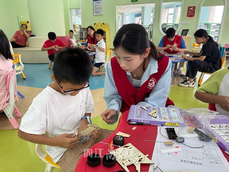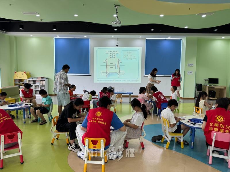 “活动从周二到周日,每天都有不同主题的精品课程。”东兴区新时代文明实践中心志愿者万雨蕾介绍,包括STEAM实验、3D工坊、书法、DIY等,旨在通过科普实践、非遗体验,培养孩子们的科学素养和文化自信。参与活动的肖运辰小朋友兴奋地说:“以前暑假做完作业就发呆,现在每天都有新课程,特别有趣!自己动手做的东西会跑会跳,还能学到电路知识,很有成就感!”