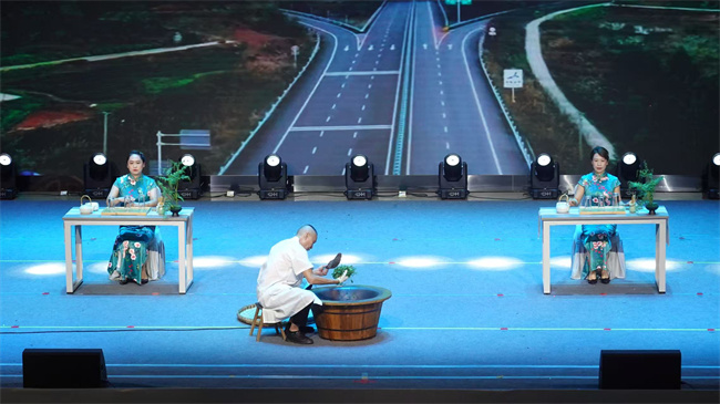 竞演荟萃精品,乡土文化焕发时代光彩。来自界牌镇、镇西镇、新店镇、龙会镇、小河镇的精品节目以“村镇代言+特色文化表演”形式集中呈现:界牌镇《走进新农村》以欢快舞姿展现乡村蝶变新貌,描绘乡村崭新图景;镇西镇《五里蒿的故事多》用音乐情景剧深情演绎稻作文化、非遗项目叶儿粑的传承和地方文脉;新店镇《一芽早仔姜的自述》创新运用朗诵快板,讲述“致富姜”产业故事,探索“仔姜+旅游”融合新模式;龙会镇《匠心》以情景剧再现返乡青年带领村民自办“村晚”并获佳绩的动人故事,彰显基层文化蓬勃创造力;小河镇《茶乡茶韵》现场展示传统制茶工艺,呈现茶产业特色与匠心传承。