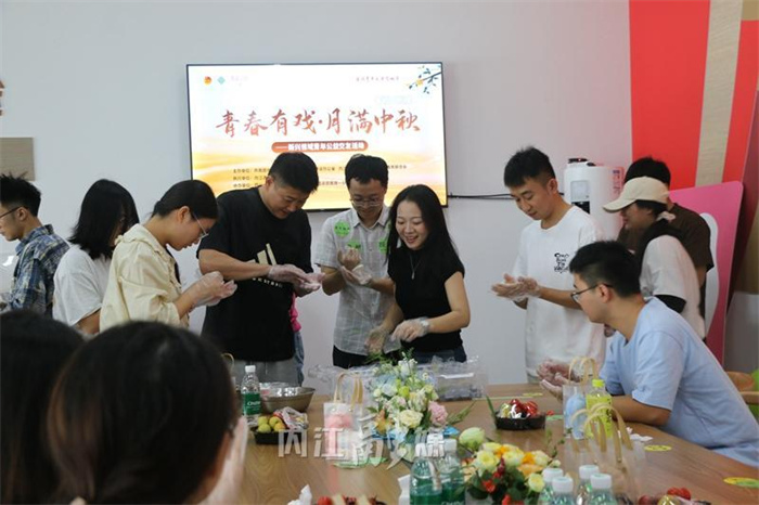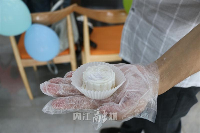 游戏落幕,冰皮月饼制作环节开启。现场备好了糯米面团、香甜馅料与月饼模具,专业师傅细致指导:“20克面团揉圆压薄,包馅料,揉成圆柱体后用模具一压就成型了。”青年们纷纷动手制作,空气中甜香弥漫,中秋温情悄然传递。