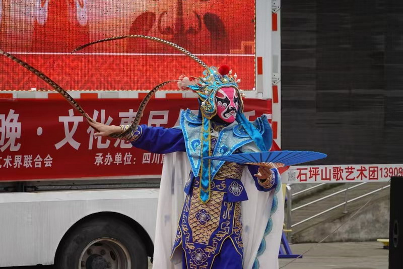 观英滩镇竹塘村带来的舞蹈《幸福中国一起走》,以轻盈步伐与昂扬姿态舞出新时代的蓬勃朝气;山王镇街头演绎的川剧《变脸》惊艳亮相,瞬息万变间引爆如雷掌声;严陵镇婆城公园中,歌曲《威远不远》深情唱响,句句传递着割不断的乡情乡韵;威远万达广场上,《花好月圆》翩翩起舞,以优美韵律烘托出团圆温馨的节日氛围。每场演出在《走向复兴》《共筑中国梦》的全场大合唱中推向情感高潮,共同绘就了一幅团圆美满、振奋人心的节日画卷。主持人妙语连珠,演员全情投入,观众热情互动,生动诠释了“演员演得动情、群众看得开心”的惠民初心,营造出文明和谐、积极向上的文化氛围。