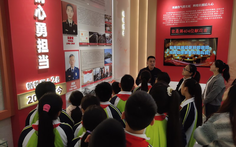 步入烈士纪念馆,泛黄的照片、锈蚀的勋章、珍贵的革命文物,无声诉说着烽火岁月。“抗战期间,威远21817人参军,群众踊跃捐献煤炭与粮食……”随着讲解员深情讲述罗世文等本地英烈的感人事迹,在场师生无不动容。专题片中战士冲锋、党员冒险送情报的画面,将书本中抽象的“革命精神”转化为真切的情感共鸣,使肃穆的烈士陵园成为一堂生动的“行走思政课”。