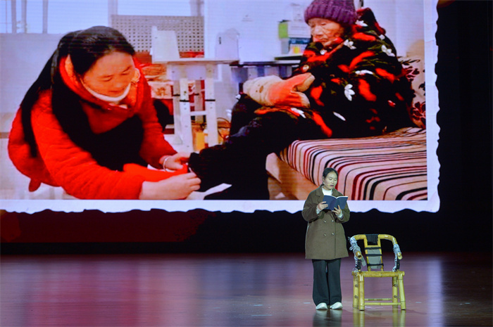 新年新气象,榜样催人进。报告会主题鲜明、形式新颖,以“创新力量”“大爱无垠”和“真情人间”三大篇章依次展开,通过第一人称讲述、家属同事代叙、舞台情境再现、跨时空艺术对白、实物展示、越洋连线等多种融合手法,用艺术化的舞台呈现和真实的故事讲述,将全国劳动模范、全国乡村振兴青年先锋、中国好护士、感动中国年度人物、全国模范检察官、全国先进工作者、全国道德模范提名奖获得者等七位先进模范的动人故事娓娓道来。
